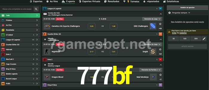 O 777bf oferece uma grande seleção de opções de apostas em e-sports com probabilidades competitivas